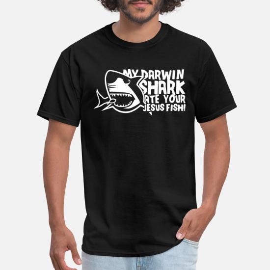 Men S My Darwin Shark Ate Your Jesus Fish Funny Jo Men S T Shirt Spreadshirt